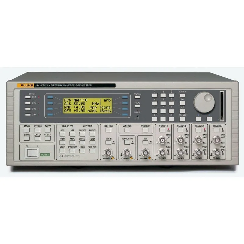 Генератор сигналов 294- это 4-канальный 80 Мб/с генератор сигналов специальных форм и программное обеспечение Waveform Manager Plus. Универсальные генераторы специальных форм сигнала сочетают возможности нескольких генераторов в одном приборе. Их широчайшие возможности объединяют возможности генераторов произвольных форм сигнала, генераторов функций, генераторов импульсов/пачек импульсов, генераторов развертки, генераторов запускающих сигналов, генераторов тональных сигналов, генераторов шумов и источников амплитудной модуляции.
