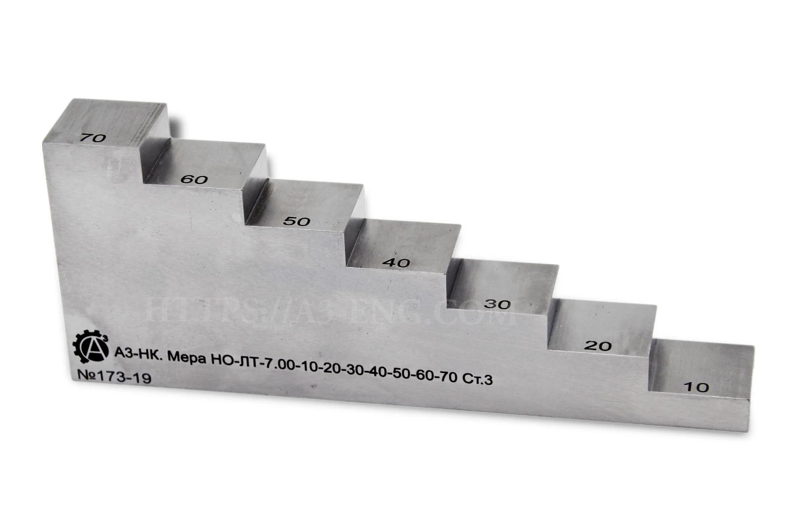 Меры НО-ЛТ.Х.00 представляют собой изделие в виде пластины, одна сторона которой имеет ступенчатую форму. Все меры производятся с воответствии с 427610-011-4407661-2019.ТУ.