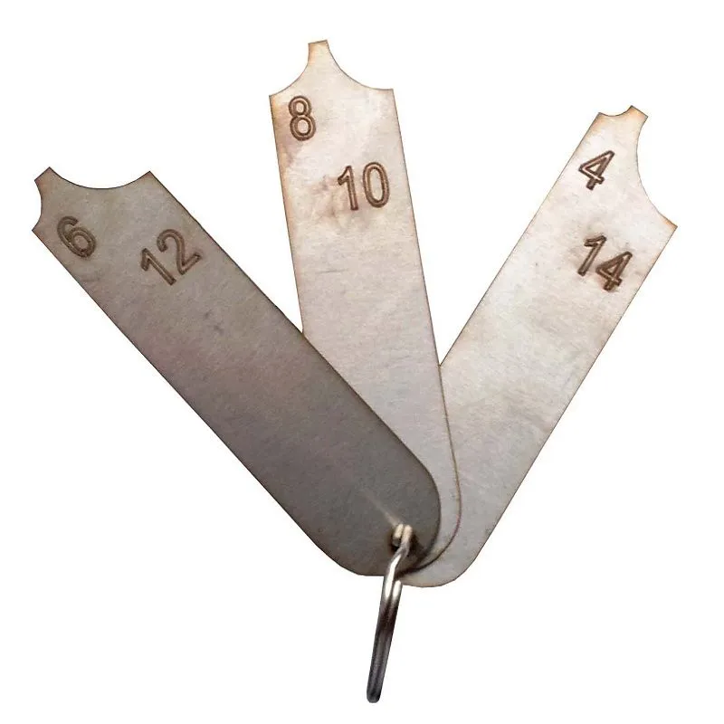 Универсальный шаблон сварщика УШС-2, предназначен для контроля катетов угловых сварных швов в диапазоне 4-14мм.