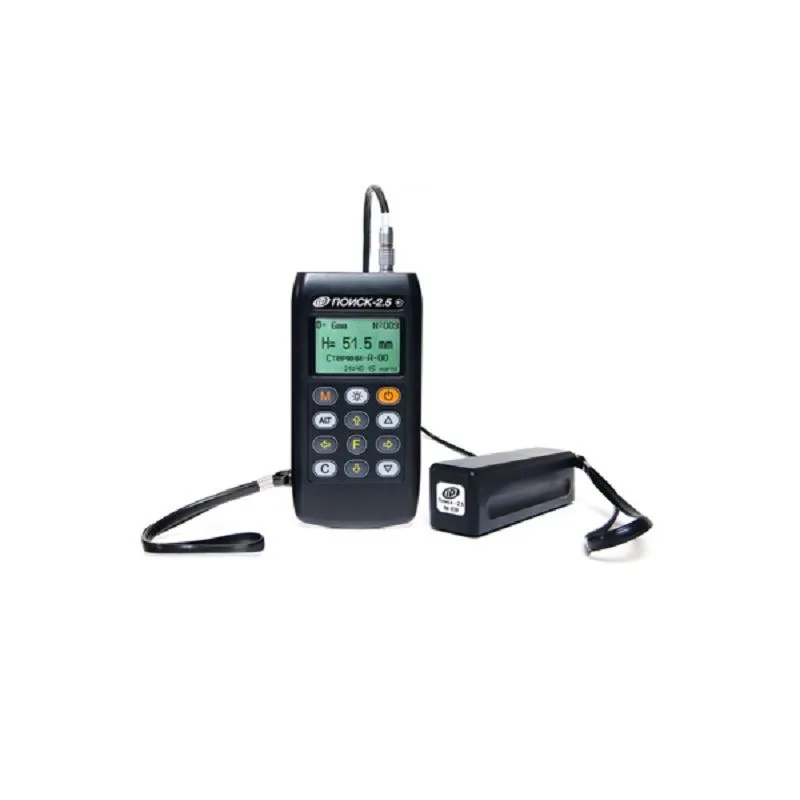 Измеритель толщины защитного слоя бетона ПОИСК-2.51 имеет функции измерения толщины защитного слоя при известном диаметре арматуры, выбор диаметра, хранение результатов с указанием даты и времени, определение неизвестного диаметра с помощью диэлектрической прокладки и связь с компьютером (ПК).