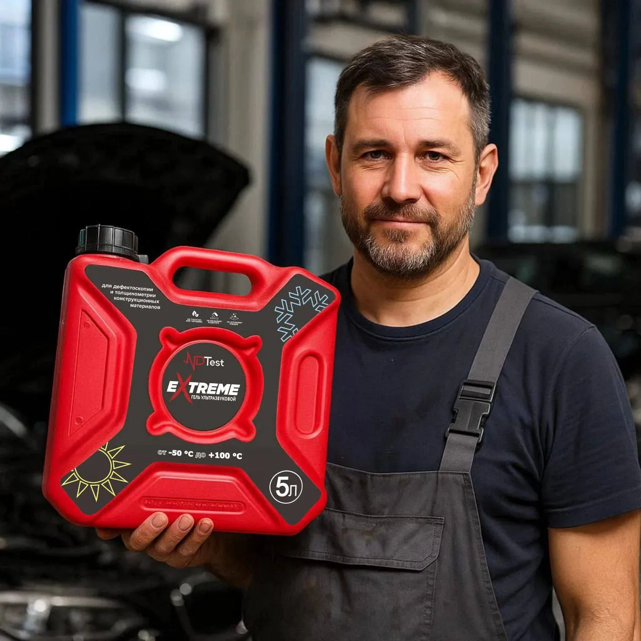 • Обладает более высокой вязкостью, что обеспечивает лучшее проникновение ультразвуковых волн в материал и улучшает качество контроля. Вязкость геля позволяет проводить ультразвуковой контроль на вертикальных и потолочных поверхностях, тем самым снижая расход жидкости